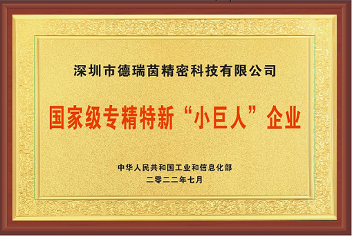 2022年7月,深圳市德瑞茵精密科技有限公司荣获国家级专精特新“小巨人”企业称号,公司坚持技术优先、坚持守正创新,将一如既往向国内外半导体制造行业提供高性能设备和高效率服务。